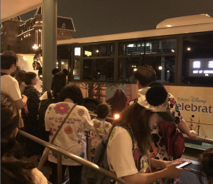 自分らはランドの夜のパレードを見終わってすぐにランドを出てバス停に向かい、最初に見つけた場所を逃しても10分後にすぐに乗ることができた。